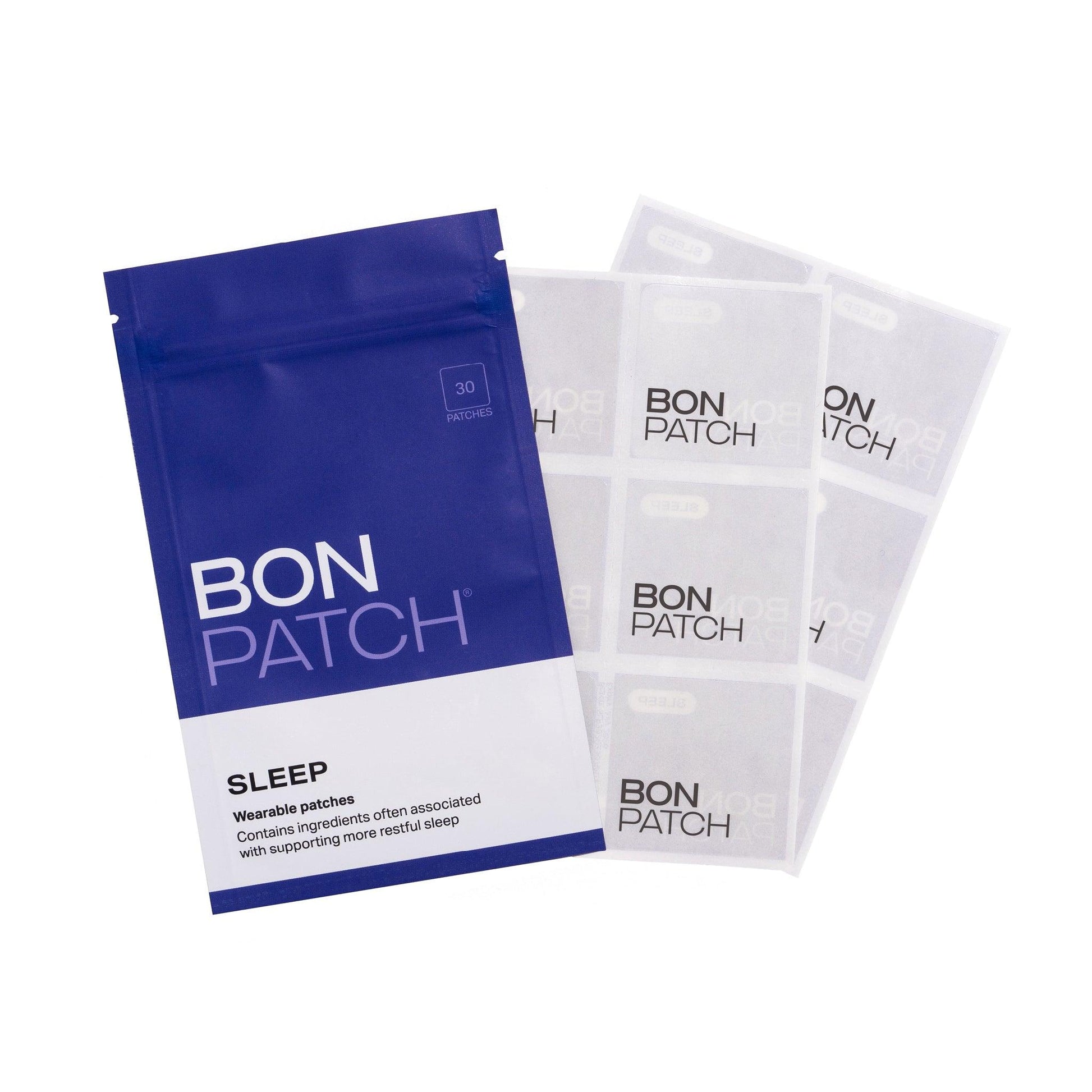 BonPatch SLEEP is a wellness patch infused with ingredients including valerian, passionflower, hops, purified hemp extract, and lavender essential oil aroma, which are associated with supporting more restful sleep.
