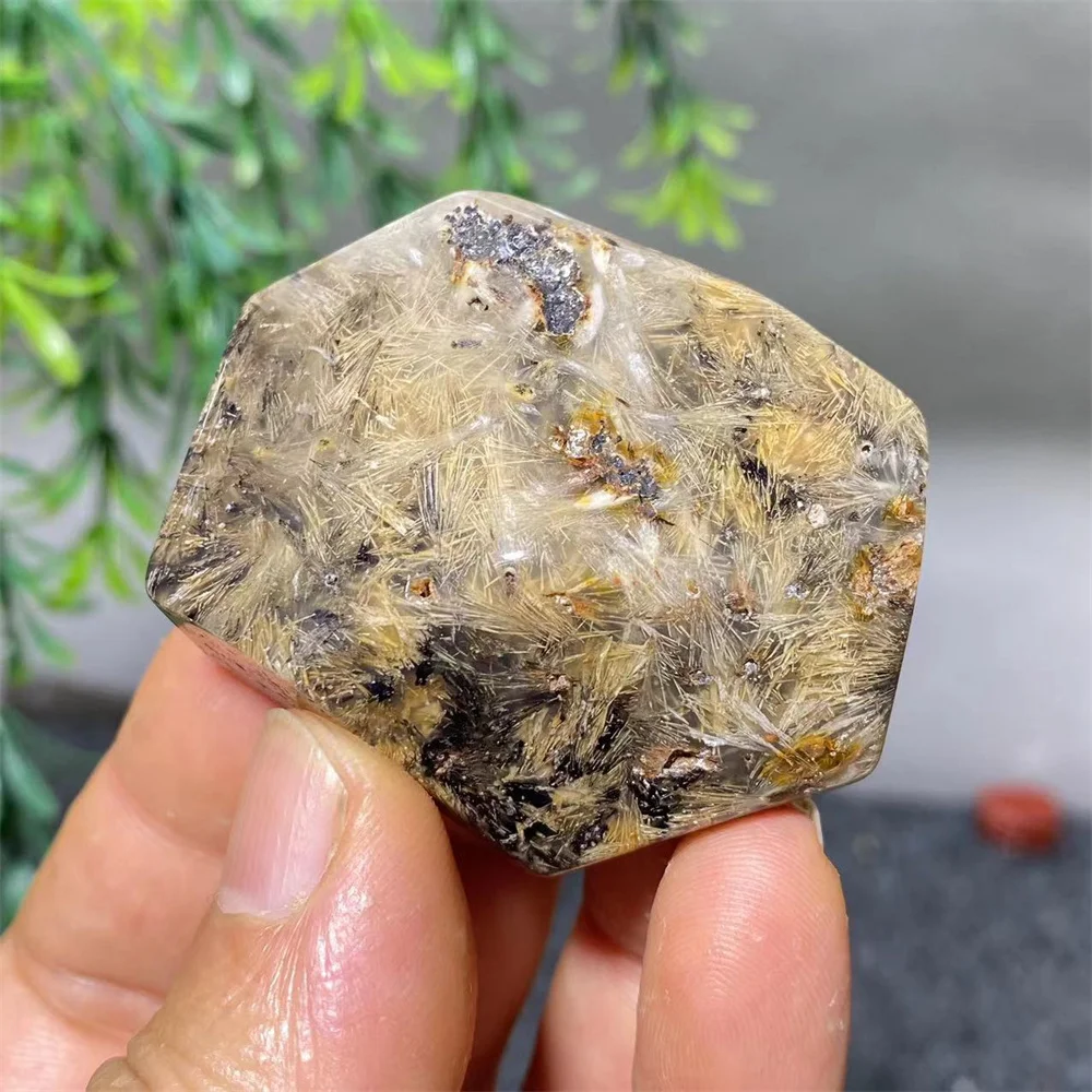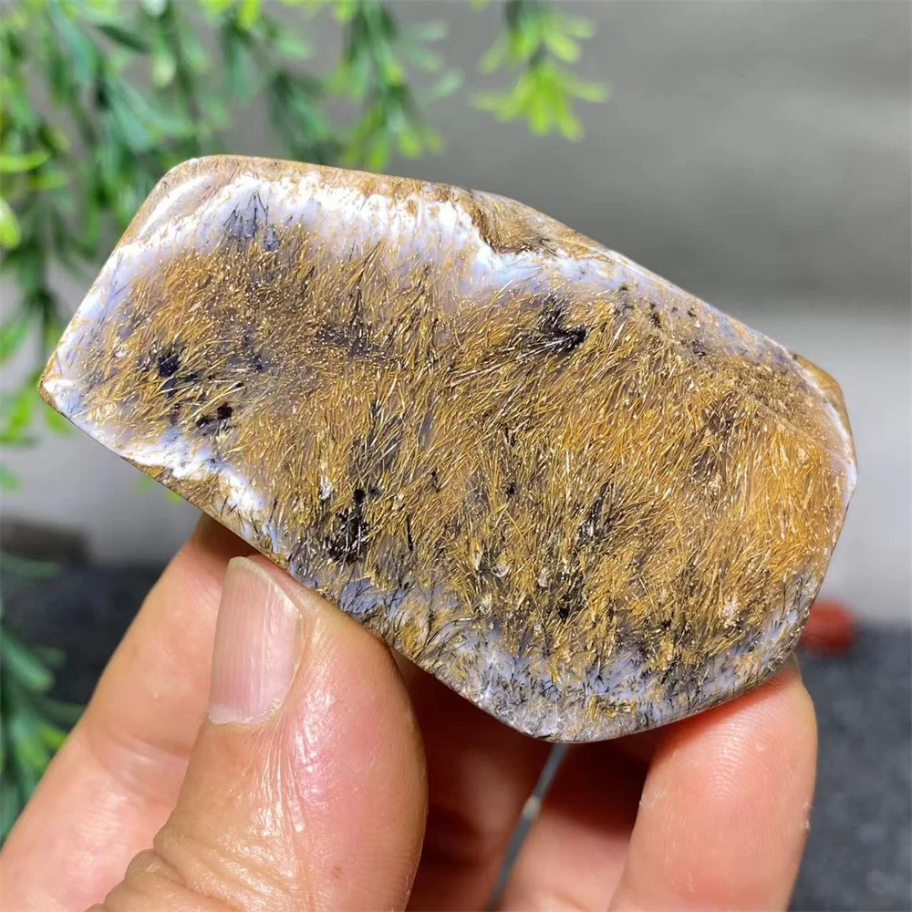 Crystal Natural Hair Agate Slab Polyhedron Quartz Minerals Home Decoration Stone Reiki High Quality Beauty Healing